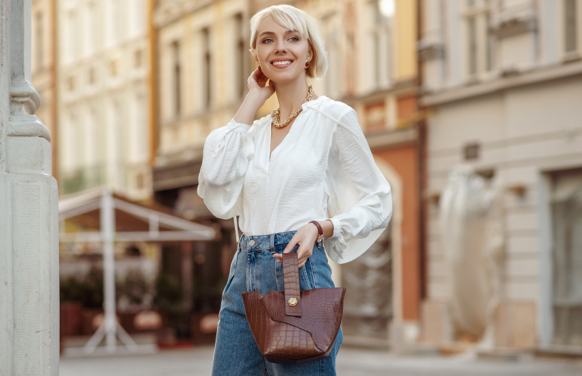 - Аксессуары с характером. Дьявол кроется в деталях. Для кэжуала жесткий офисный портфель – моветон. Замените его на мягкую сумку-хобо, в которую поместится «вся жизнь», или лаконичную кросс-боди, чтобы освободить руки для стаканчика кофе. И обязательно инвестируйте в качественный кожаный ремень с акцентной пряжкой. Это та самая точка, которая «держит» джинсы и делает образ с заправленной рубашкой законченным.