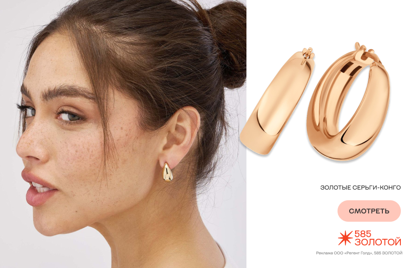 - Серьги-конго. Начните с них. Гладкие кольца не слишком большого диаметра – фундамент ювелирного гардероба. Они подходят ко всему: от расслабленного спорт-шика до собранного делового кэжуала. Это тот случай, когда можно надеть не глядя и выглядеть великолепно.