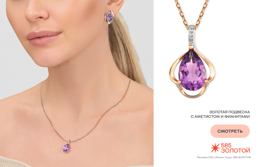 - Идеальный формат. Крупный перстень, браслет или подвеска в вырезе рубашки. Аметист любит контакт с кожей. Для улучшения сна украшение можно (и нужно) класть на прикроватную тумбочку.