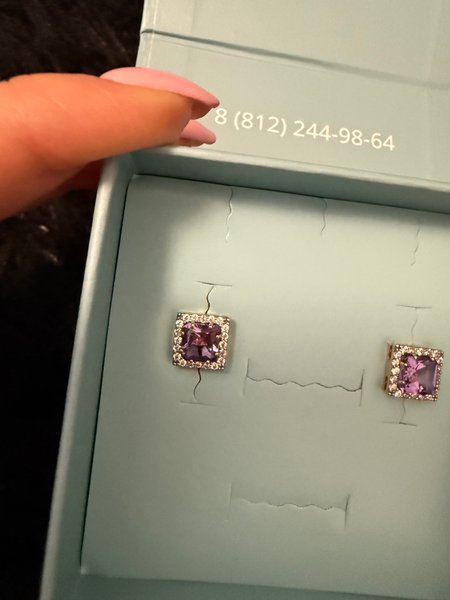 Очень красиво смотрятся серьги, аметист эффектно выглядит в обрамлении фианитов Нет