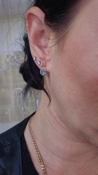 Красивые камни, подошли в комплект к кольцу. Замки качественные Скорее на маленькую мочку, но мои сели хорошо.