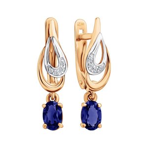 Золотые серьги с сапфирами выращенными и бриллиантами