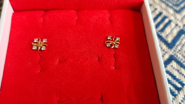 Очаровательные К ним нет комплекта в таком же стиле Тиффани Серёжки хоть и маленькие, но достойные! Яркие бриллиантики и сочетание алмазного перелива с золотым металлом!