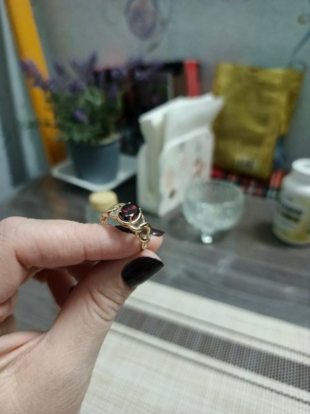 Интересное, необычное. Не плохой камушек. Пока не увидели. Отличное колечко. Из-за своей необычности и привлекло к себе внимание. А т.к нужного размера в магазине не было, пришлось заказать. Но пришло довольно быстро. Чему я очень рада. «Подарочек» на гранатовую свадьбу.
