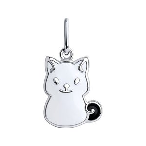 Фото «Серебряная подвеска Кот с эмалью и родированием»