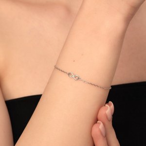 Минималистичный, но эффектный серебряный браслет с фианитами — отличный выбор для ценительниц современного стиля. Тонкая цепочка и символ бесконечности, инкрустированный сверкающими фианитами, подчеркнут хрупкость и изящество вашей руки, добавив образу нотку элегантности.