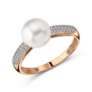 Фото «Золотое кольцо с жемчугом и фианитами»