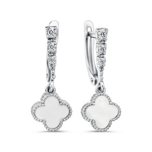 Фото «Серебряные серьги с перламутром и фианитами»