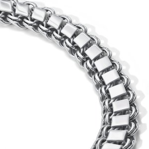 Каждое звено дополнено накладкой в форме ромба, придающей плетению рельеф, глубину и характерную «чешуйчатую» фактуру, ассоциирующуюся с образом дракона — символа силы, защиты и власти.