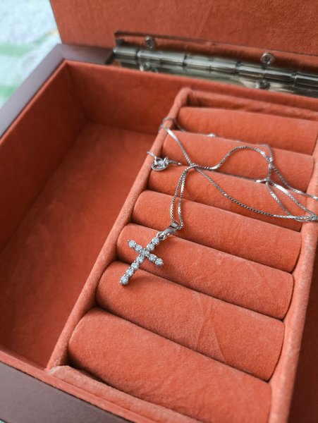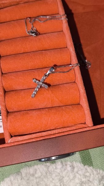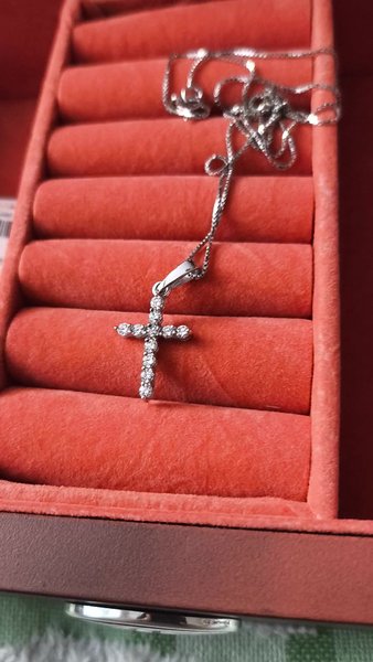 Красивый крестик. Камни сияют, камера не передаёт всей красоты. Никаких, цена сказка. Спасибо за большую скидку.