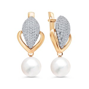 Фото «Золотые серьги с жемчугом и фианитами»