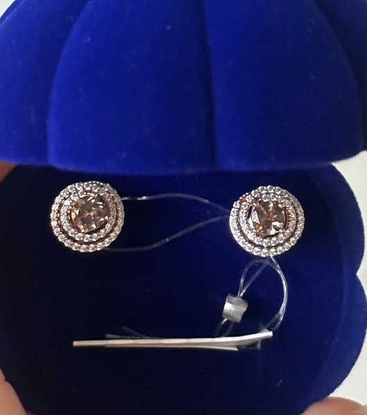 Фото «Золотые серьги с раухтопазами и фианитами»