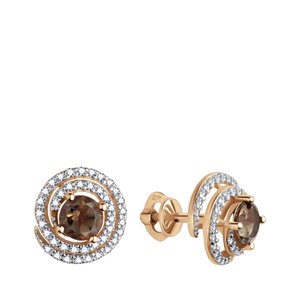 Золотые серьги с раухтопазами и фианитами