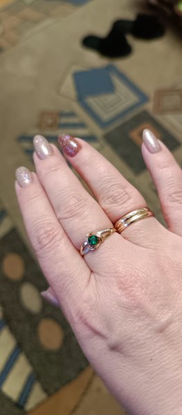 Золотое кольцо с изумрудом выращенным и бриллиантами