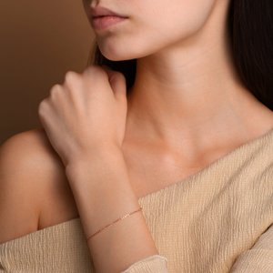 Тоненький, ро мне именно такой и нужет был. Цвет в рыжий уходит по сравнению с др браслетом В целом довольна. И цена хорошая