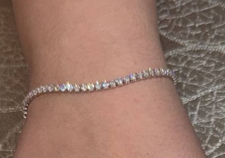 Теннисный браслет смотрится замечательно даже ,если перекрутился и замок находится с внешней стороны. Отличная игра света фианитов-вставок. Поясок-регулятор размера добавляет игривости браслету. Данное изделие молодит любой образ. Отсутствуют Рекомендую всем леди для для повышения самооценки. Полюбите и побалуйте себя изысканным украшением.
