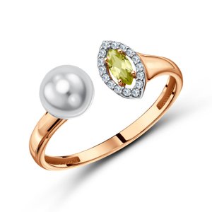 Фото «Золотое кольцо с жемчугом, хризолитом и фианитами»