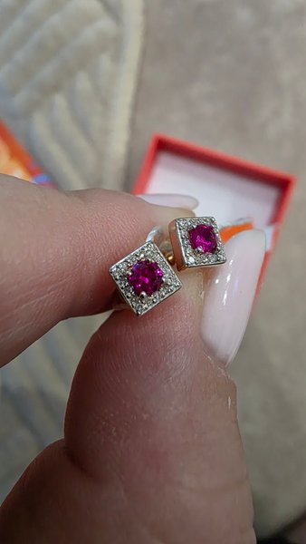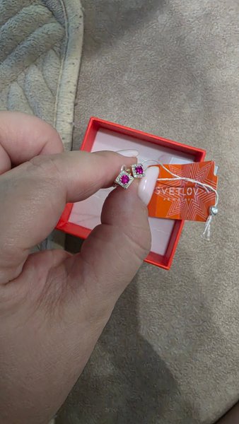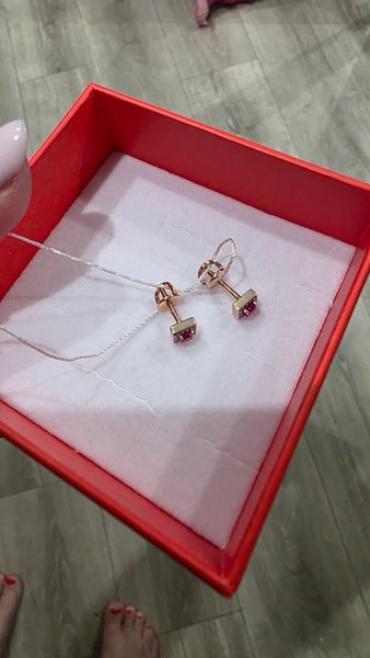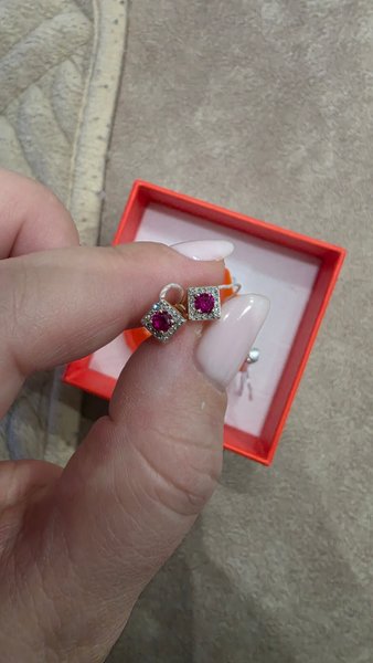 Прекрасные пусеты! Бриллианты блестят, рубины сверкают! Очень стильно смотрятся! Нет Очень удобный штифт, примерно 9мм. Длина без резьбы 4мм. Хорошая надежная винтовая застёжка. Пусеты не маленькие, заметные. Покупала их для повседневной носки, спать в них удобно. Прекрасные яркие ,но в то же время аккуратные и стильные серьги, смотрятся достойно!