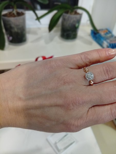 Великолепное колечко . Хорошая работа ювелиров . Прекрасный крупненький 0,11 ct центральный бриллиант . Однозначно советую Нет Елена