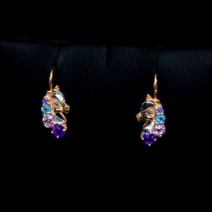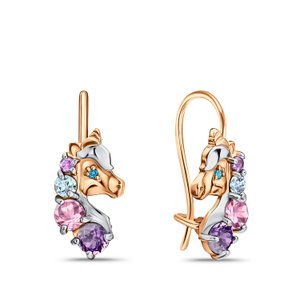 Золотые серьги с аметистами, топазами Swiss и фианитами