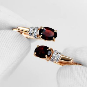 Фото «Золотые серьги с гранатом и фианитами»