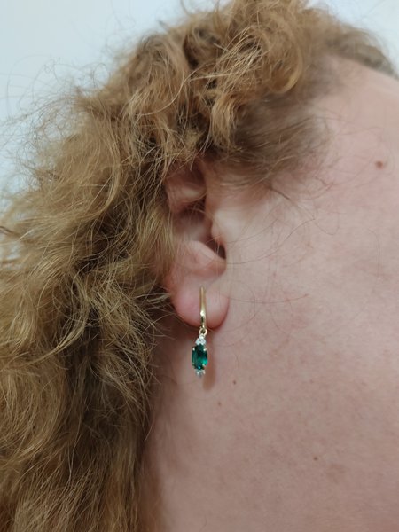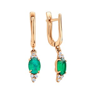 Золотые серьги с изумрудами выращенными и бриллиантами