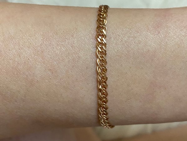 Крепкий замочек, легкая носка, не ощущается на коже, красиво смотрится на руке. Купила в магазине, осталась очень довольна. Браслет из золота, выглядит изящно и аккуратно, очень красивое плетение. Вживую смотрится очень хорошо — нежная работа , но при этом заметная. Удобный замочек, внезапно ничего не растегивается, всё сделано качественно, приятно носить. Отлично подходит как на каждый день, так и под более нарядные образы. Идеально для тонкого запястья!