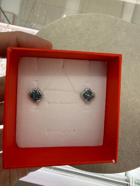 Бриллиант природный синий обла x 2 шт. • Вес 0.074 карат • Огранка 57 кр • Цвет/чистота 5/4