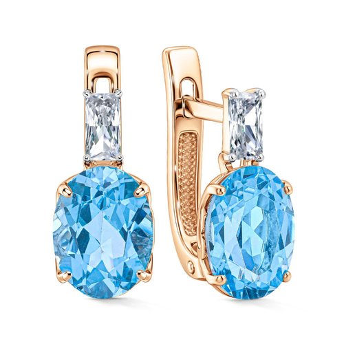 Золотые серьги с топазами Swiss и фианитами