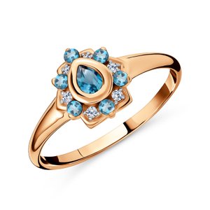 Золотое кольцо с топазами London и фианитами