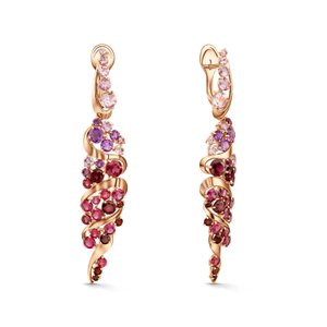 Золотые серьги с аметистами, гранатом и родолитами