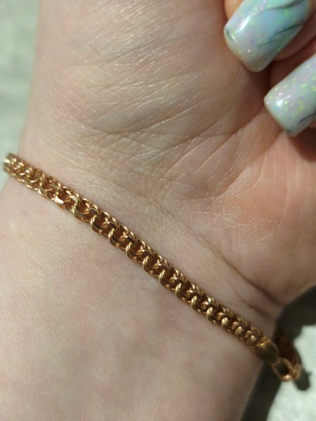 Плотная, хорошая цепь Не выявила Покупала на подарок, отлично смотрится на руке. Не слишком толстый, но и не тонкий не счет двойного плетения