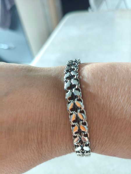 Тяжеленький, красивейшее плетение! После покупки не выявлено - посмотрю через полгода-год постоянного ношения. 😉 Браслет не для хрупких тонкокостных девушек - т.е. для меня! 👏👏👏