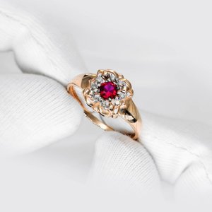 Золотое кольцо с рубином выращенным и бриллиантами