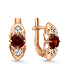 Фото «Золотые серьги с гранатом и фианитами»