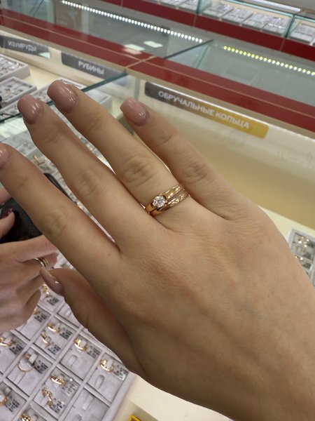 Очень красивое колечко, шикарно смотрится на руке. Молодой человек выбрал его в качестве помолвочного и не прогадал.