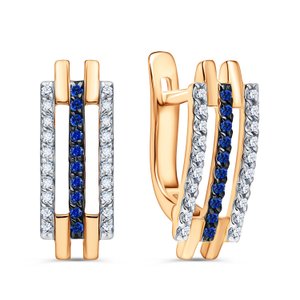 Золотые серьги с сапфирами выращенными и бриллиантами