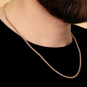 Цепь красивая, полновесная. Не узкая. Перекручивается на шее, но это тип плетения такой.