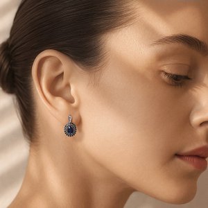Серебряные серьги с сапфирами и шпинелью