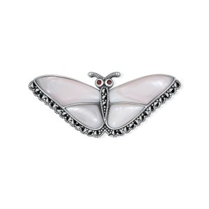 Фото «Серебряная брошь с перламутром, марказитами и гранатом»
