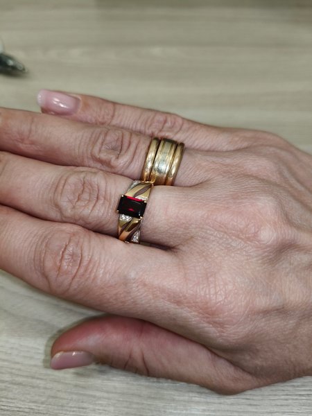Золотое кольцо с гранатом и фианитами
