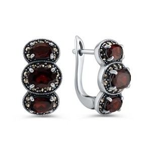 Серебряные серьги с гранатом и марказитами