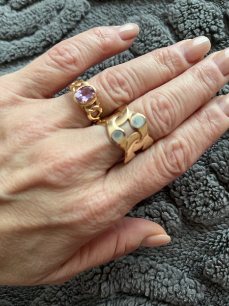 Очень красивое кольцо. Не смотря на массивный по виду дизайн на пальце смориться аккуратно.