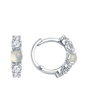 Фото «Серебряные серьги с лунным камнем и фианитами с родированием»