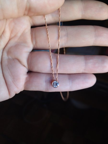 Очень нежно смотрится Надо тоненькую цепочку с маленьким кольцом в начале иначе ге одеть Понравилась давно её хотела. А тут такая цена. Фианит блестит на солнце. Очень красиво