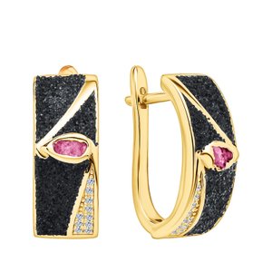 Серебряные серьги с глиттером, имитацией кварца и фианитами