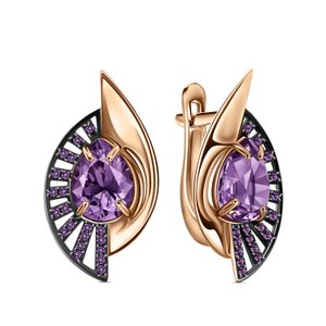 Золотые серьги с аметистами и фианитами