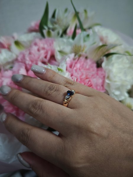 Золотое кольцо с сапфиром выращенным и бриллиантами