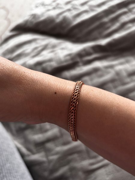 Красивое плетение, обьемный, чувствуется на руке. Мечта о браслете сбылась. Теперь это моя любовь.