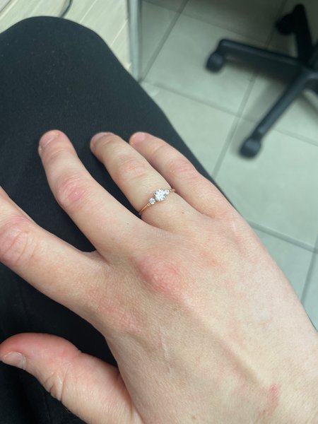 Очень аккуратное и милое колечко. При искусственном свете камушек хорошо сверкает Пока не увидела